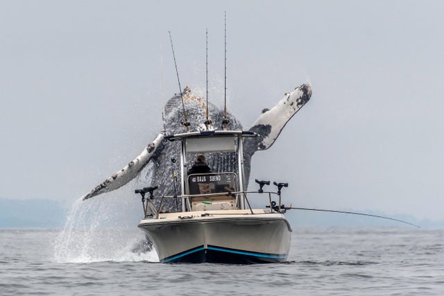 也太近!出海賞鯨遇「座頭鯨飛越出海」 咫尺巨獸嚇到漁夫:差點翻船