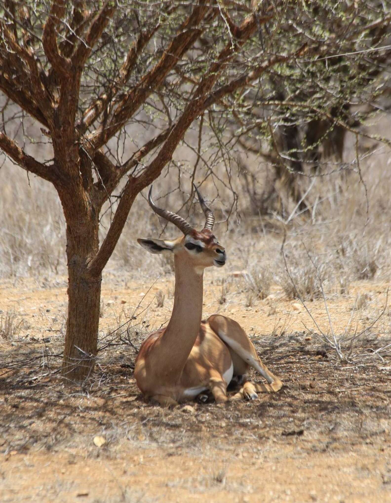 ▼長頸羚不需要到處找水喝,牠們可以吸收植物上的水氣來作為體內所需的水份。長頸羚獨特的身體結構能防止水分蒸發,這在乾旱的環境中是得天獨厚的優勢。