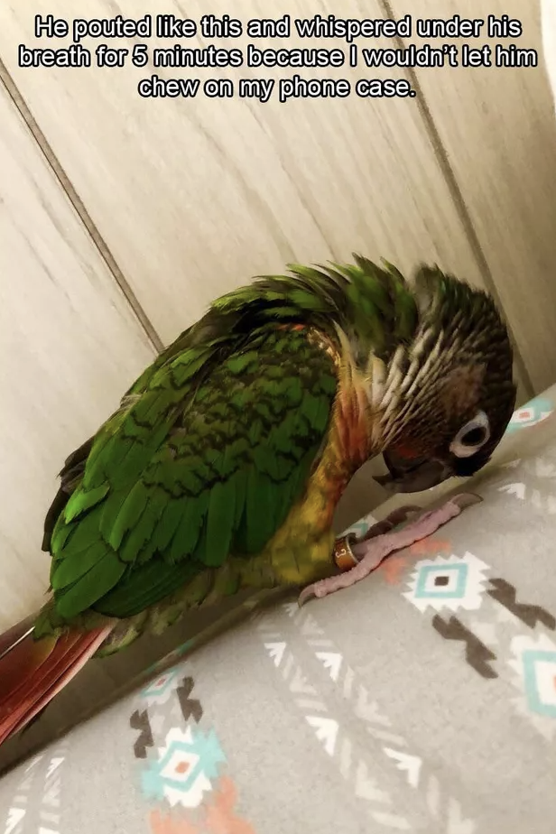 ▼「我不讓牠在我的手機殼上吃東西,牠森氣氣了。」