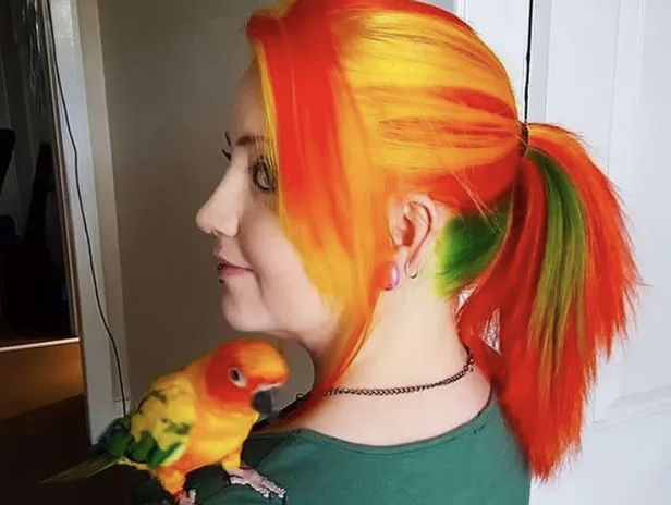 ▼牠的羽毛顏色跟主人的髮色一樣。