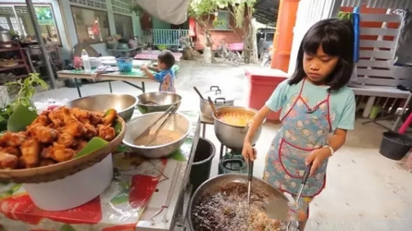 2022年03月31日窮人的孩子早當家。泰國有一名叫「碧兒」的小女孩。她剛剛9歲,就獨自經營炸雞店,撐起了整個家庭。原來她的父母離婚,她和2個弟弟跟著爺爺奶奶生活,經濟非常窘迫。為了讓大家過得好一些,小小年紀的碧兒成為了這間炸雞店的老闆~
