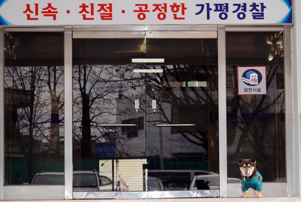 2022年04月01日韓國京畿道加平警局警衛室有一隻可愛的小警犬。牠穿著綠色制服,看起來很有精神。這隻小黑狗原本是一隻浪浪,牠自己上門,跑到警局應徵當警犬,還陪警員值班一整夜。警員們被牠感動,於是給了牠一個機會,讓牠成為了警局中的一員~