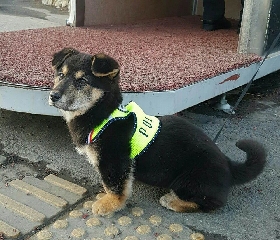這隻小黑狗來到警局,如願以償當上警犬,再也不用流浪街頭了。警局就是牠的家,牠已經是公務員啦,希望牠能健康快樂長大,未來成為一隻威風凜凜的警犬吧~
