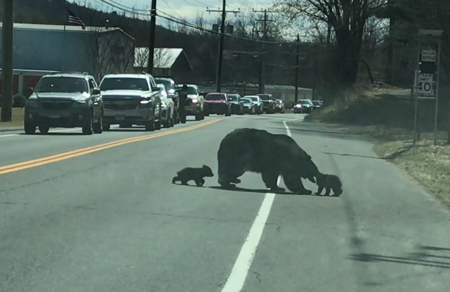 2022年04月01日熊寶寶很可愛,但熊媽媽卻超辛苦!最近國外一位網友在郊區的公路上拍到了有趣的一幕,只見黑熊媽媽帶著4隻熊寶寶準備過馬路。來往的車輛都停下來,等這一家5口先過去,沒想到熊寶寶非常調皮,給媽媽添了好多麻煩。熊媽媽一隻一隻將寶寶送到馬路對面,真的好累好無奈。