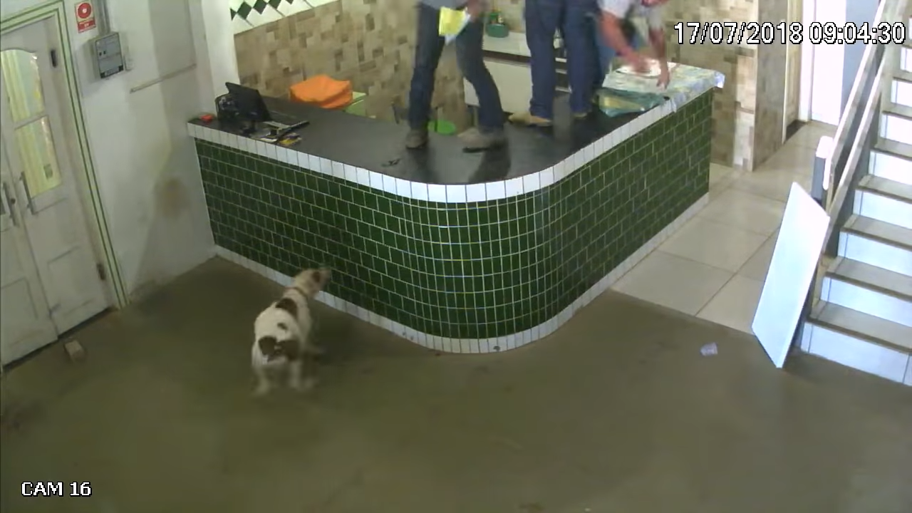 2022年04月04日熱情的狗狗很討喜,但怕狗的人遇到太主動的狗狗,就有不一樣的體驗了~2018年時,巴西羅迪尼亞鎮(Rodnia)的一間餐廳中出現了有趣的一幕。當時一群裝潢工人正在餐廳內忙碌,一隻牛頭梗突然闖進來。裝潢工人嚇了一跳,立刻落荒而逃。狗狗還以為他們在跟自己玩,狂搖尾巴看起來很開心。