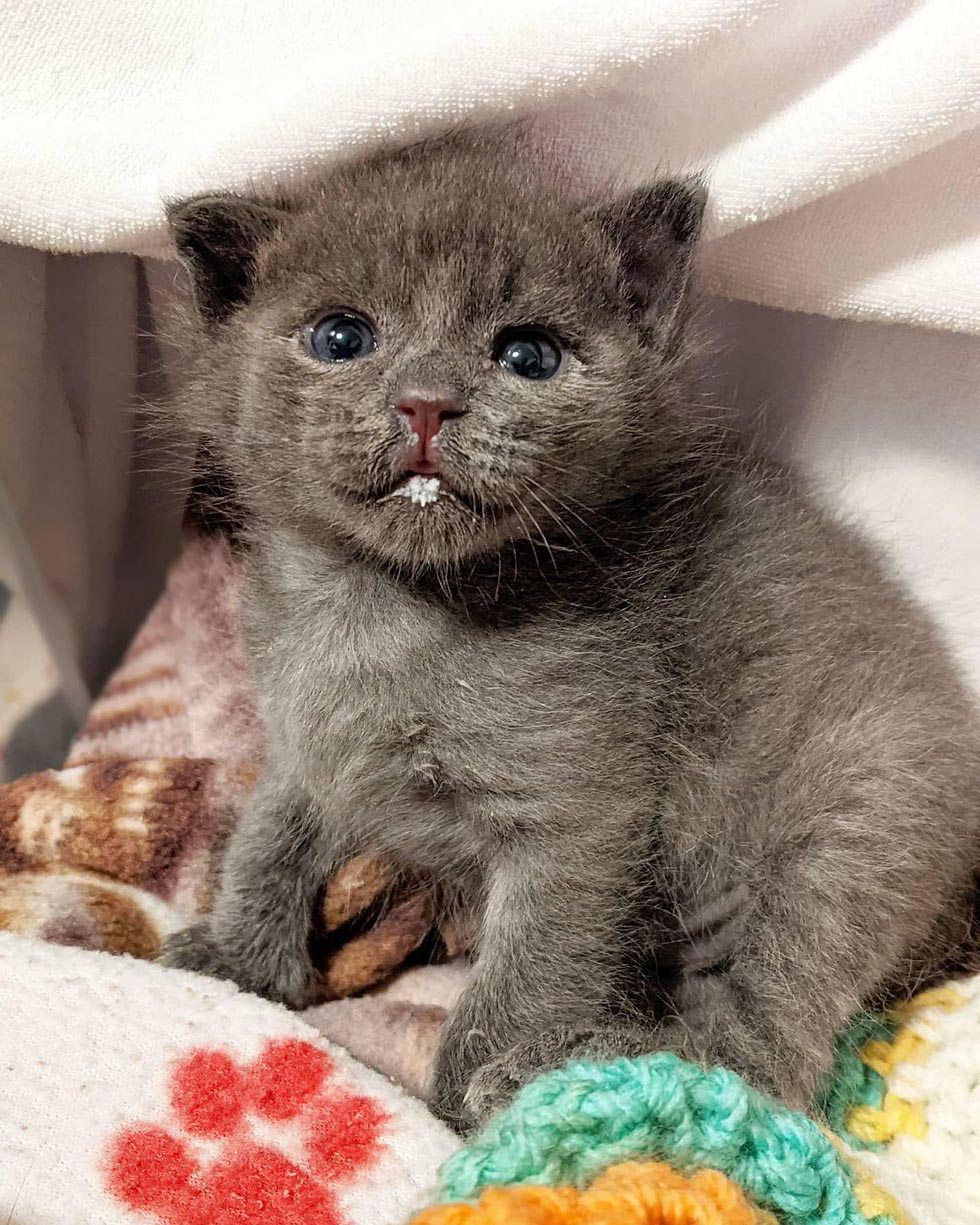 2022年04月13日不久前,美國加州一位網友的愛犬在院子裡玩耍時,叼回來一個小毛球。那是一隻剛剛出生幾天的奶貓。主人將這件事po到網路上,希望有人能提供幫助。動物救援組織「Friends for Life Rescue Network」的創始人將牠接回來,並交給一對好心的夫妻Adam和Margaux照顧。