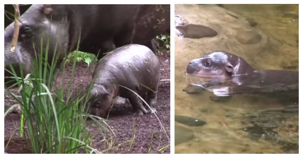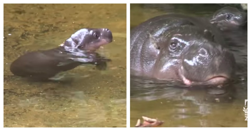 ▼Obi是一隻侏儒河馬,牠是2015年5月底出生的。在牠不滿一個月大時,媽媽Petre帶著牠去動物園的大水池游泳。這是Obi第一次到那麼大的水池裡游泳,在媽媽的鼓勵下,牠才鼓起勇氣下水。媽媽在水池中非常從容,Obi卻手忙腳亂,急著抬頭換氣,看起來很可愛。