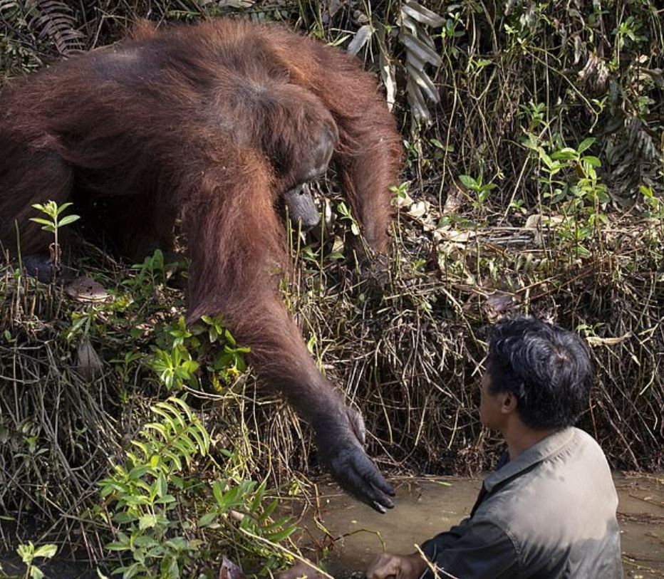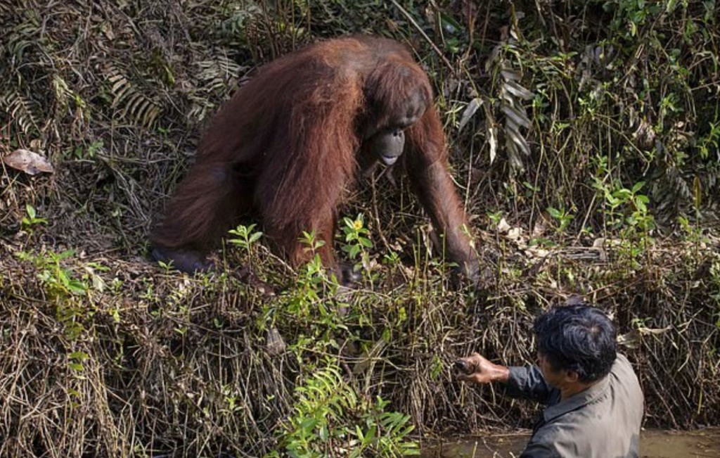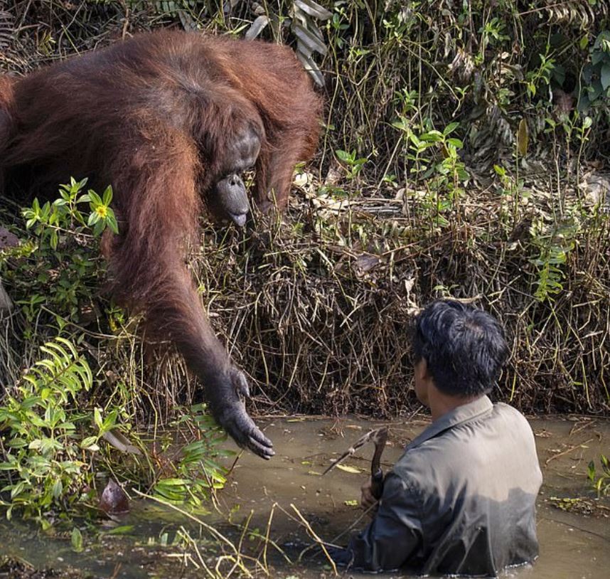 2022年04月11日人類會幫助動物,動物也會幫助人類!印尼攝影師Anil Prabhakar在野外偶然拍到了超感人的一幕,只見一名男子待在水中,岸上的一隻人猿向他伸出援手,似乎想要把他拉上岸。那一幕讓人覺得很暖心。