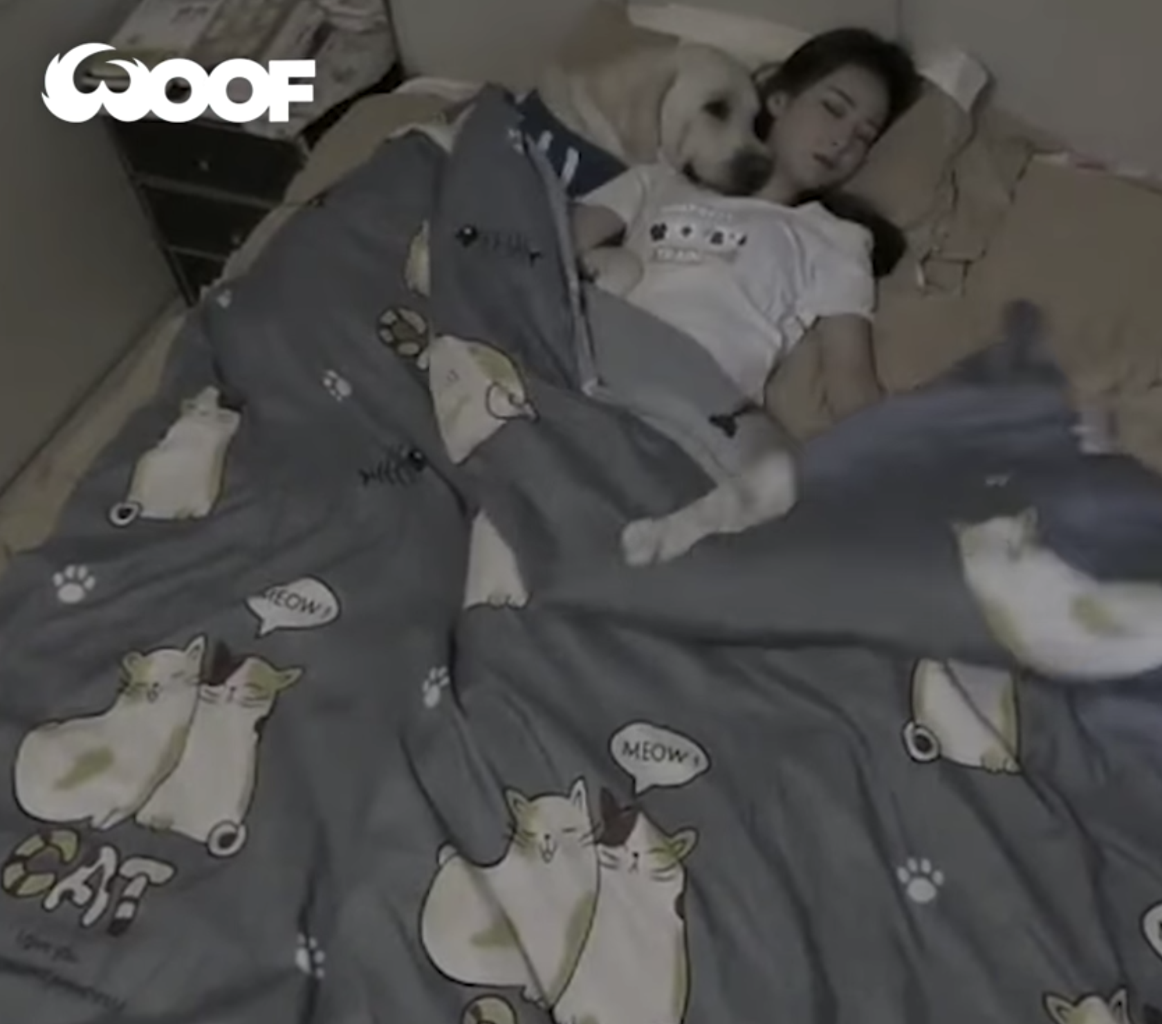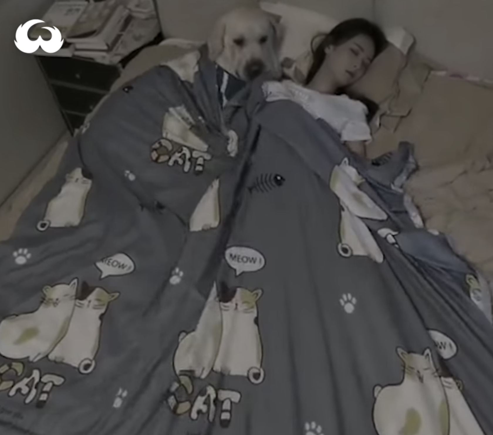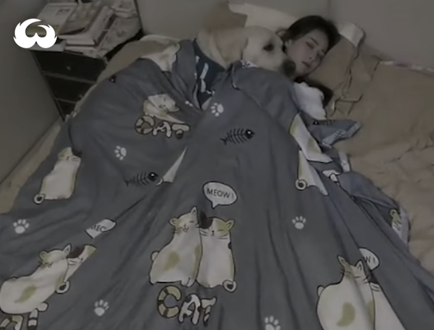 ▼主人本來和拉拉一起躺在床上,半夜時分,熟睡的主人撥開了棉被,貼心的拉拉看到這一幕,連忙起來咬住被角,將被子拉回來蓋在主人身上,就怕她著涼。
