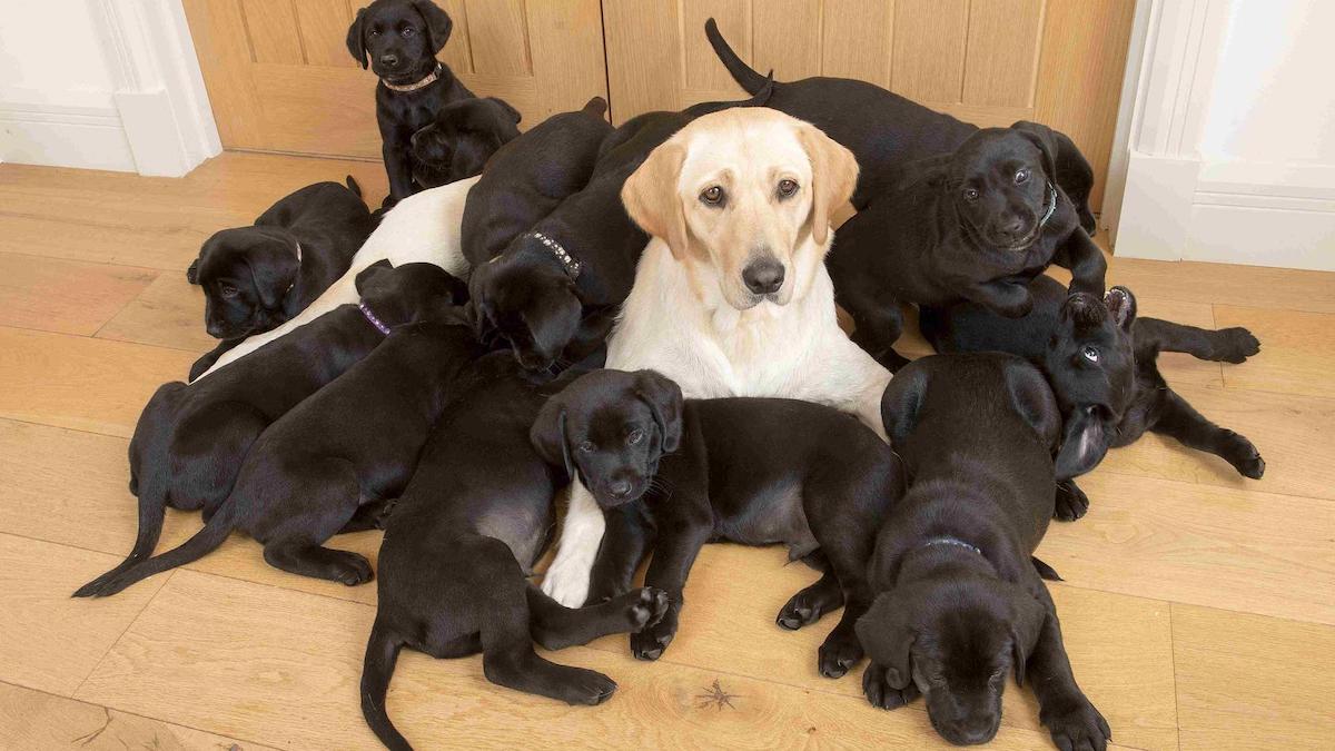 2022年04月12日「孩子都不像我!」寵物貓貓狗狗常常會有這樣的事情發生,像這隻拉不拉多狗媽媽露西(Lucy)就有這樣類似的困擾,牠一口氣連生13隻小拉拉寶寶,但是裡面沒有一隻的毛色像她是金黃色的,每隻狗寶寶的毛色都遺傳到了狗爸爸的烏溜溜黑毛,狗媽媽像是一臉無奈的表情寫著,「辛苦生了半天,沒有一隻像到我」。