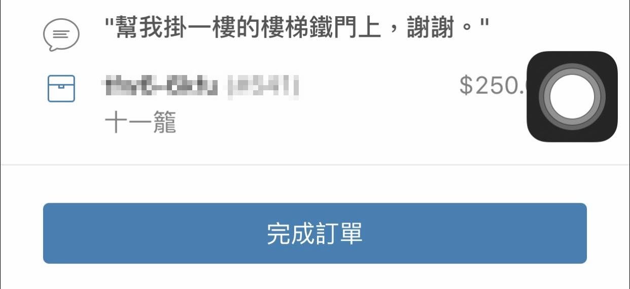 ▼這位外送員貼出訂單截圖,只見顧客備註,請他將餐點「掛一樓的樓梯鐵門上」。他到現場一看大傻眼,因為鐵門的把手是直的,兩個接觸點都焊在鐵門上,根本沒有開口可以掛提袋。他無奈說:「有點刁難人的要求,這種門把怎麼吊東西?」