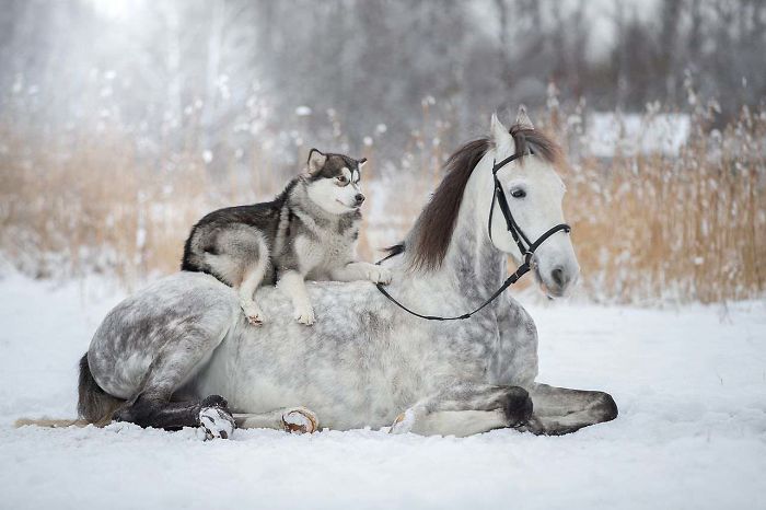 ▼21.哈士奇和馬在一起的畫面簡直絕美!