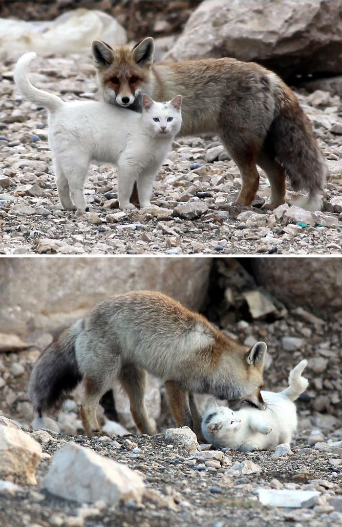 ▼26.非常罕見的狼和熊的跨種族友誼。