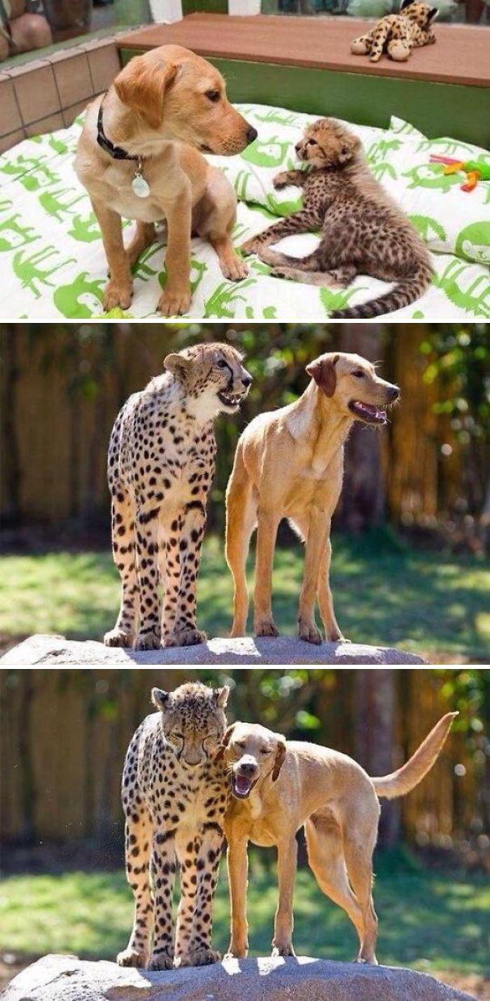 ▼5.小花豹和小狗狗陪伴著彼此一起長大。