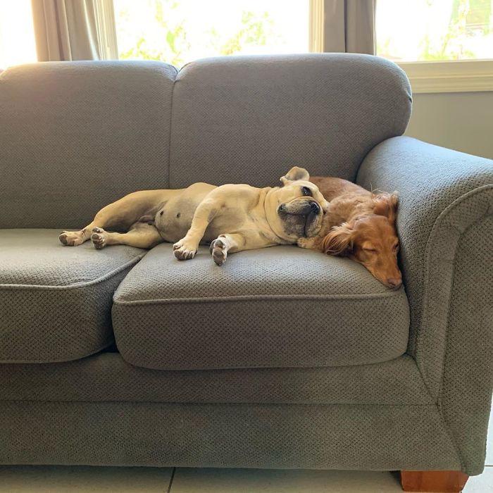 ▼36.「我原本只準備領養一隻浪浪,但是在收容所看到牠們就像是照片中這樣依偎在一起,當時我就想說絕對不能讓牠們分離,所以我把牠們兩個都收編了。」