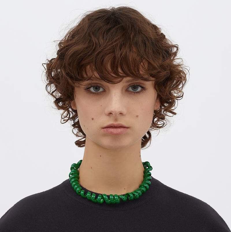 ▼項鍊的顏色多種多樣,有薰衣草色、草綠色、水藍色、紅色跟芥末黃等等,顏色多種多樣,而且都非常大膽。不管你平時的穿衣風格是什麼樣,都能搭上一條適合的電話線捲捲項鍊。