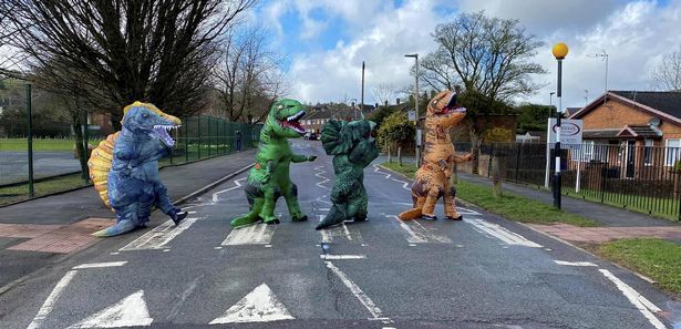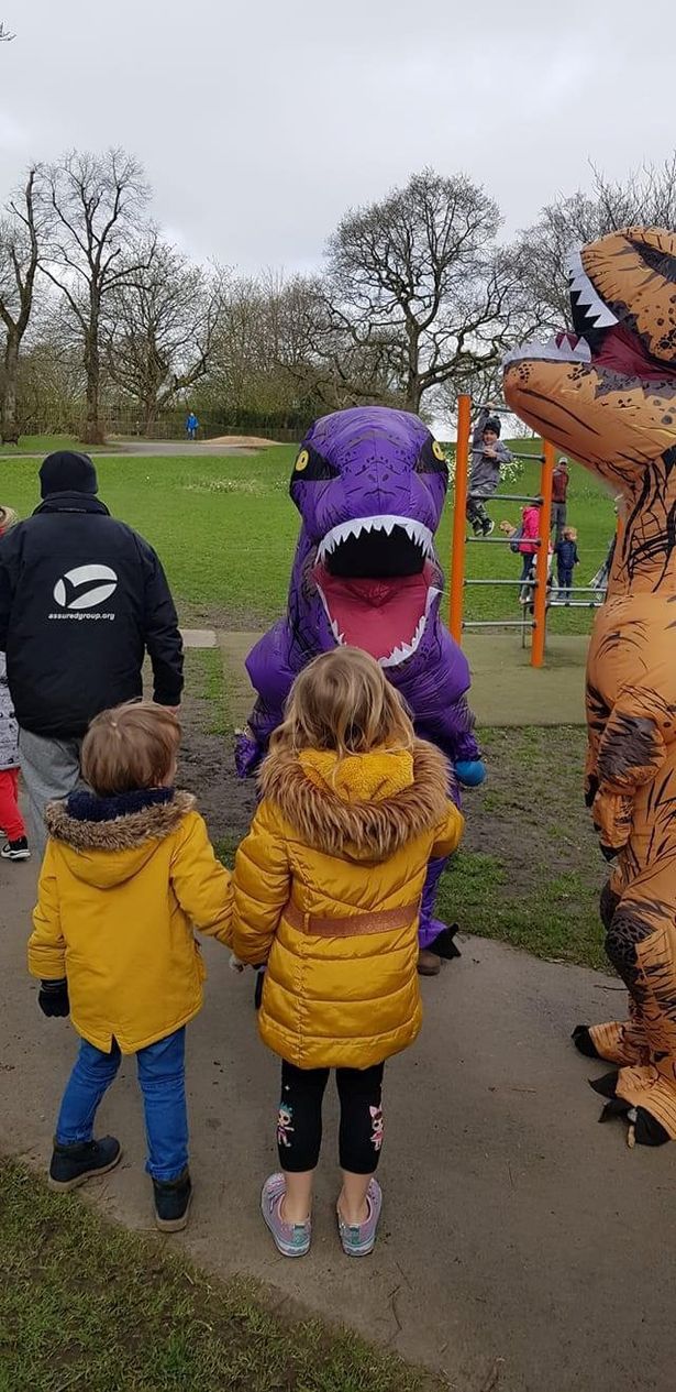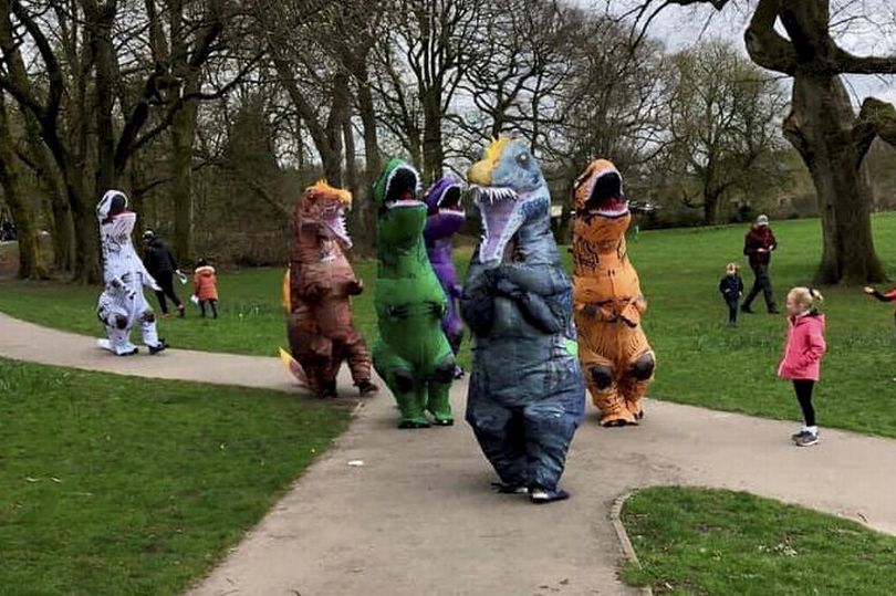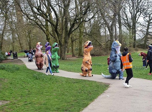 2022年04月19日在過去的2年裡,因為疫情的關係,人們的情緒比較壓抑,迫切需要做一些事來療癒~4月3日上午,英格蘭博爾頓(Bolton)網友Samantha Clarkson和丈夫、朋友們舉辦了一場特別的活動,「暴龍公園跑」。他們穿上充氣暴龍裝出現在當地公園,立刻吸引了路人的關注。