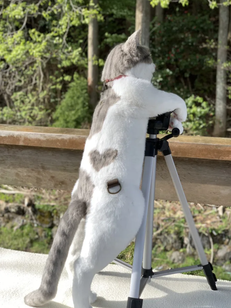 ▼貓咪的四肢能夠靈活擺動,可以將它擺成各種各樣的造型,就算不是背出門,也可以當成療癒小擺件,拍出萌萌的照片。