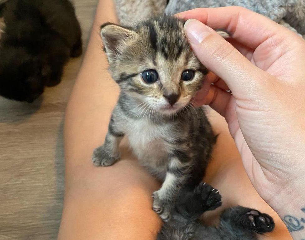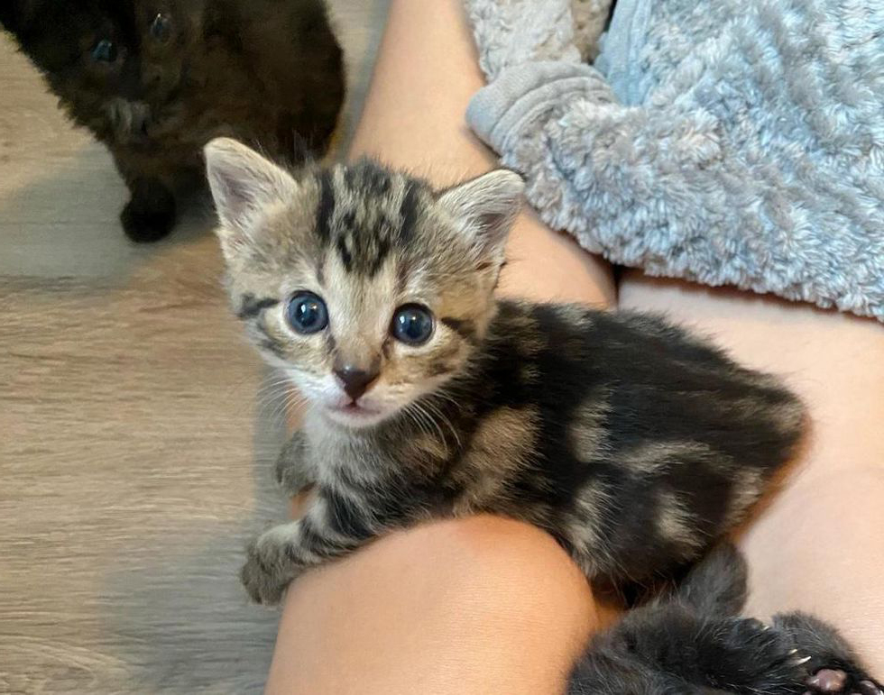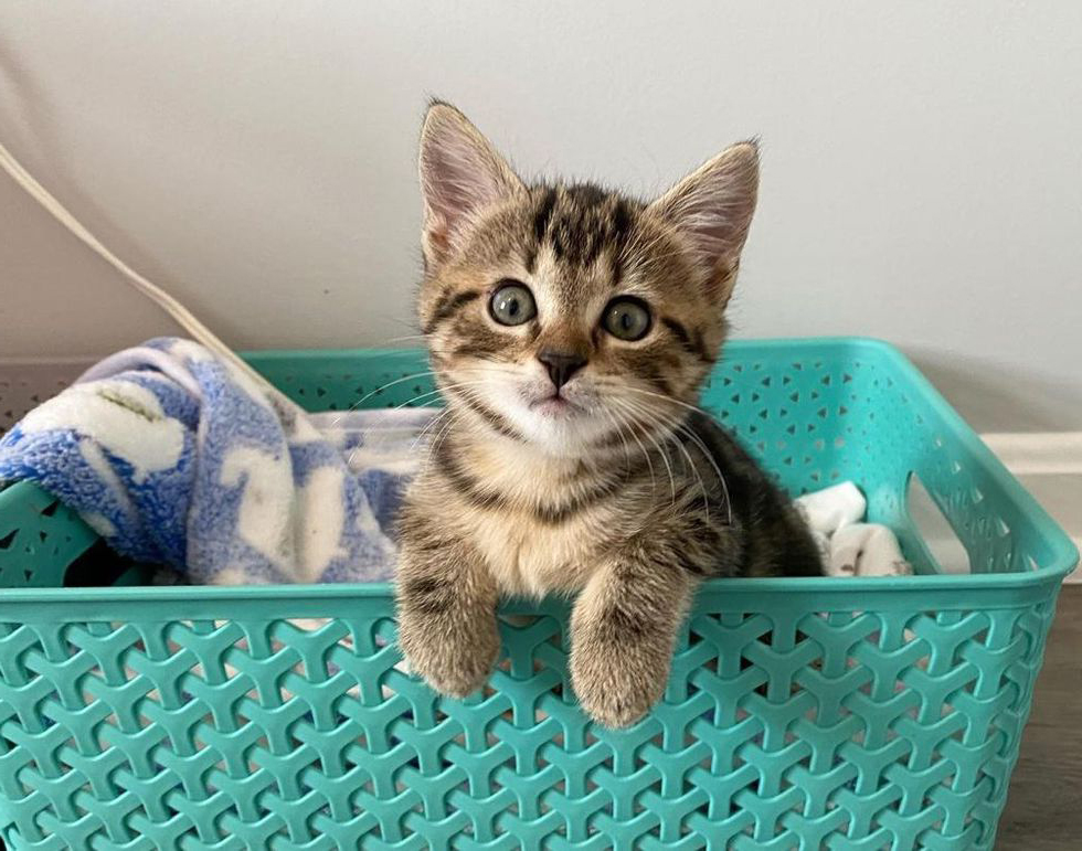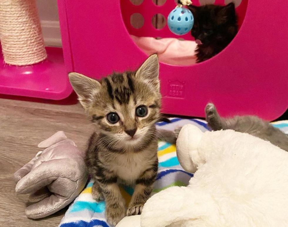 ▼從小到大,Dilly一直是兄弟姐妹中最瘦弱的那一個,但9週過去,牠已經不再那麼瘦小了。牠變成了一隻健康、可愛、調皮的虎斑貓,對周圍的一切充滿好奇。
