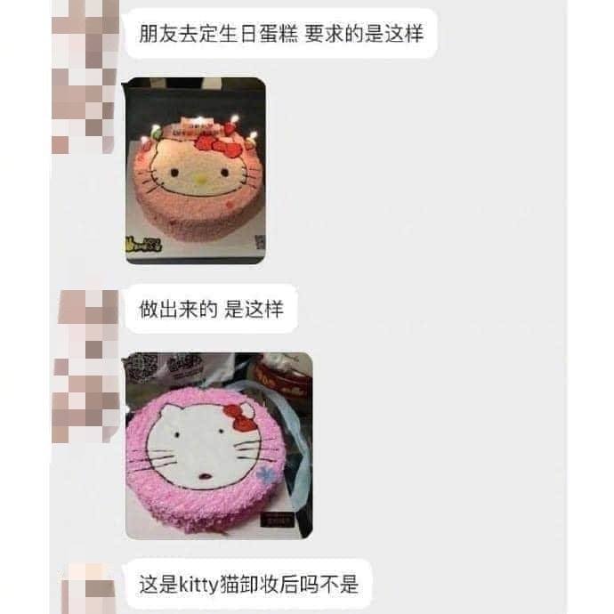 2022年04月23日現在網路購物非常便利,很多人都習慣了網購,但偶爾也會遇到商品實體和照片差很大的經驗,那巨大的反差讓人哭笑不得~日前一名網友在臉書社團「爆料公社」分享自己買蛋糕的經驗。他表示朋友去蛋糕店訂製生日蛋糕,要求是粉紅色可愛的「Hello Kitty」造型,還特別找了示意圖,但最後拿到的蛋糕卻讓人大傻眼。