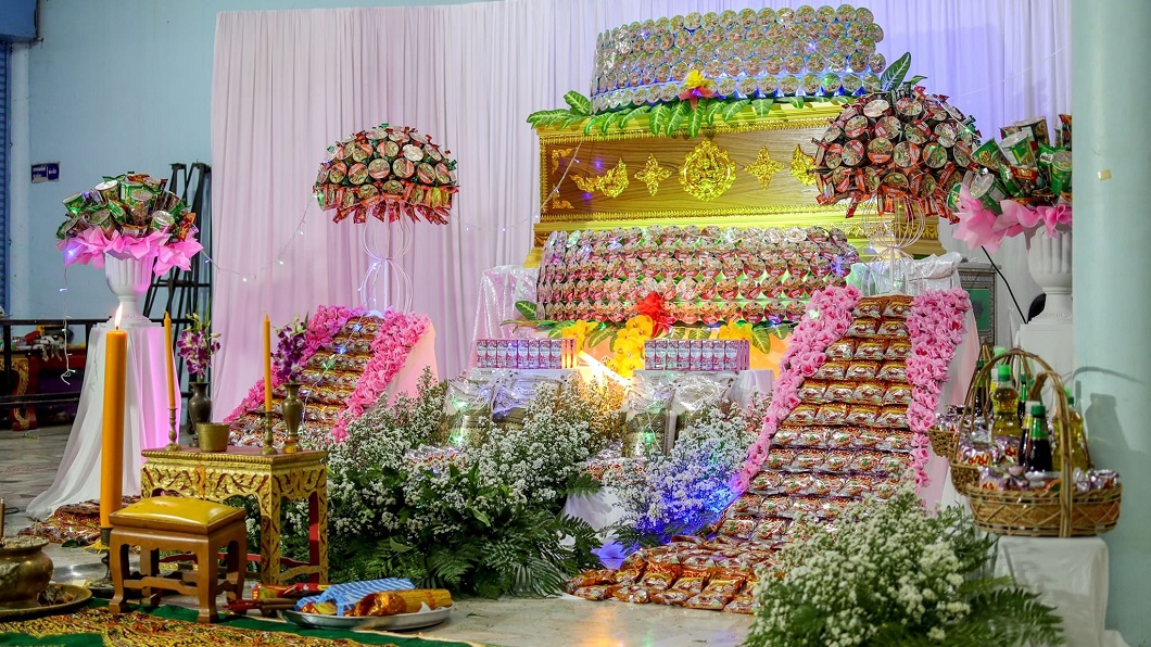 2022年04月27日不少人會在生前規劃好自己的喪禮。日前泰國北部彭世洛府一名68歲老翁過世,他生前認為喪禮會場用鮮花佈置,結束後就要扔掉,實在太浪費,因此交代家人用喪禮結束後還能繼續使用或利用的東西作為替代品。家屬21日為他舉辦喪禮時,用大量泡麵佈置靈堂,並在結束後把這些物資捐贈給育幼院、孤兒院和養老院,展現另一種大愛造福人間。