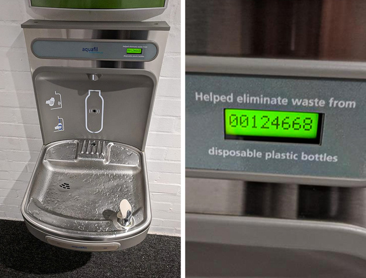 ▼這台飲水機會告訴你,使用飲水機節省了多少個塑膠瓶子的使用!