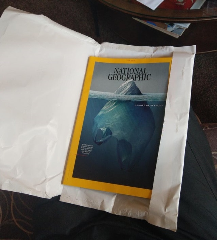 ▼雜誌為了提倡環保,採用了可分解的紙張作為包裝,而不使用塑膠袋。