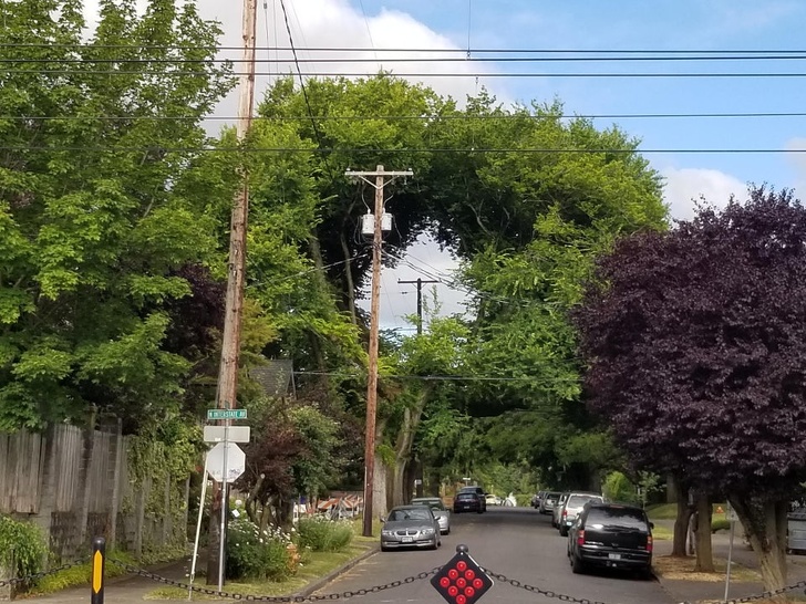 ▼不捨得將樹木砍掉,於是他們將樹木變成了交通圈圓環!
