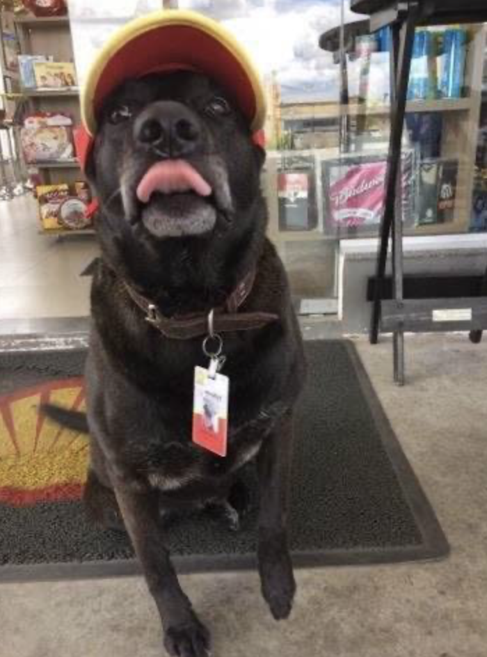 ▼Negao平時會待在加油站,Sabrina和其他員工還會帶著牠去加油站附近散步、運動。