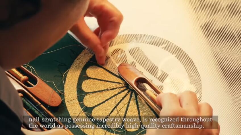 ▼這項古老的工藝名叫「綴織」,其特點就是工匠用磨成鋸齒狀的指尖作為工具來織布,相比其他的織布方式,綴織的成品能夠更好的展現出圖案的色彩和層次。