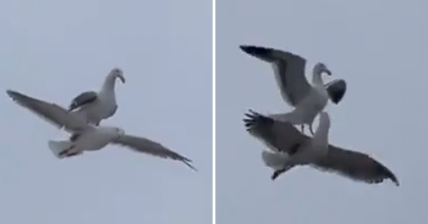 2022年04月29日大自然真奇妙!最近一段「海鷗騎海鷗」的奇妙影片在網路上流傳。只見一隻海鷗淡定站在另一隻正在飛翔的海鷗背上。直到影片結束,被騎的海鷗才猛然回頭抗議,兩隻海鷗這才分開。這段影片引發大討論,短短幾天已經有上萬網友按讚了。