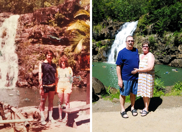 ▼結婚30週年,他們回到了當年夏威夷一起合照的地方。