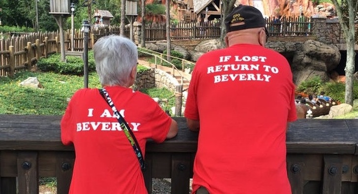 ▼老奶奶的衣服寫著「我是 Bevberly」;爺爺的衣服則寫著:「如果我走失了,請把我交給 Beverly!」