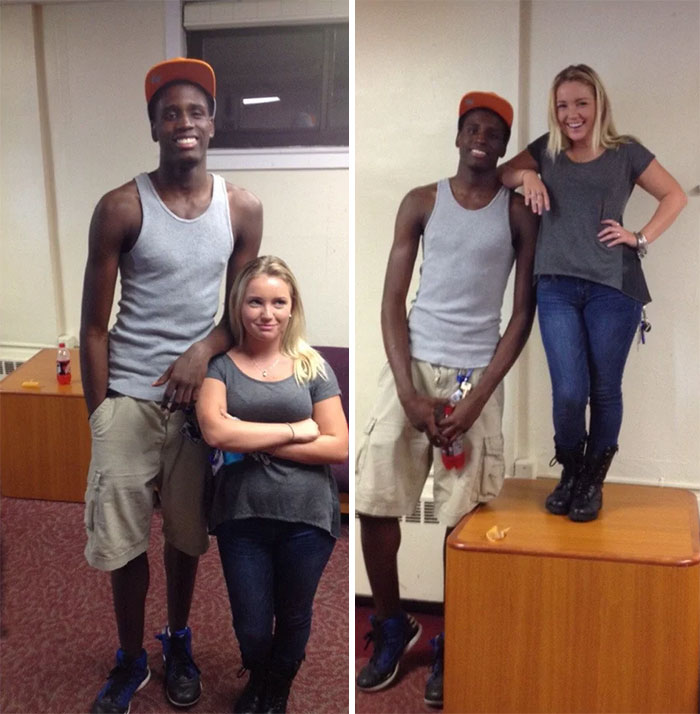 2022年05月03日很多人對自己的身高不滿意,希望能長得高一點,但長得太高的人也有自己的煩惱。「你從小就長得高嗎?」「你籃球玩得很好吧?」「高處的空氣怎麼樣?」總是有人問他們類似的問題。個子高的人與個子矮的人站在一起,會形成強烈的對比,一起來看看這些奇妙的照片吧~