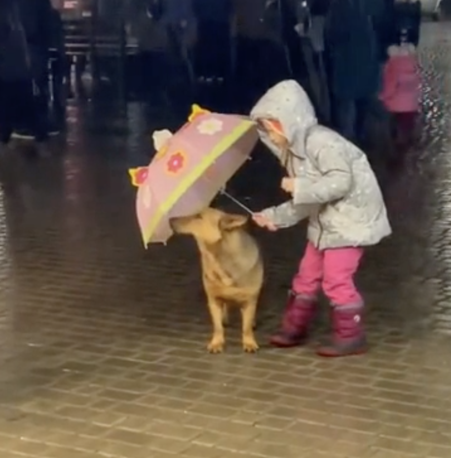 2024年01月06日小小年紀就有一顆善良的心~日前Reddit網友@abc33k分享了一段暖心的影片。只見一隻沒有戴項圈的黃狗默默在街頭淋雨,一名小女孩看到後,竟然將自己手中的雨傘分給狗狗撐。她彎著腰將雨傘撐在狗狗頭上,自己被淋濕也不在意。這超暖的舉動讓網友們的心都融化了。