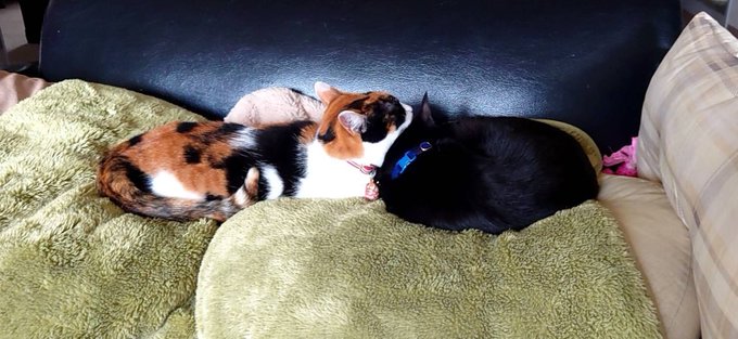▼推主住在兵庫縣,家中有2隻貓咪,分別是黑貓「玄」和三花貓「小鞠」。他給貓咪戴上智慧型項圈,並透過手機App查看貓咪們的一天行動。根據App顯示的內容,玄從早上到中午12點只奔跑了3秒,那就是去吃飯,其他時間不是在睡覺,就是在放鬆。