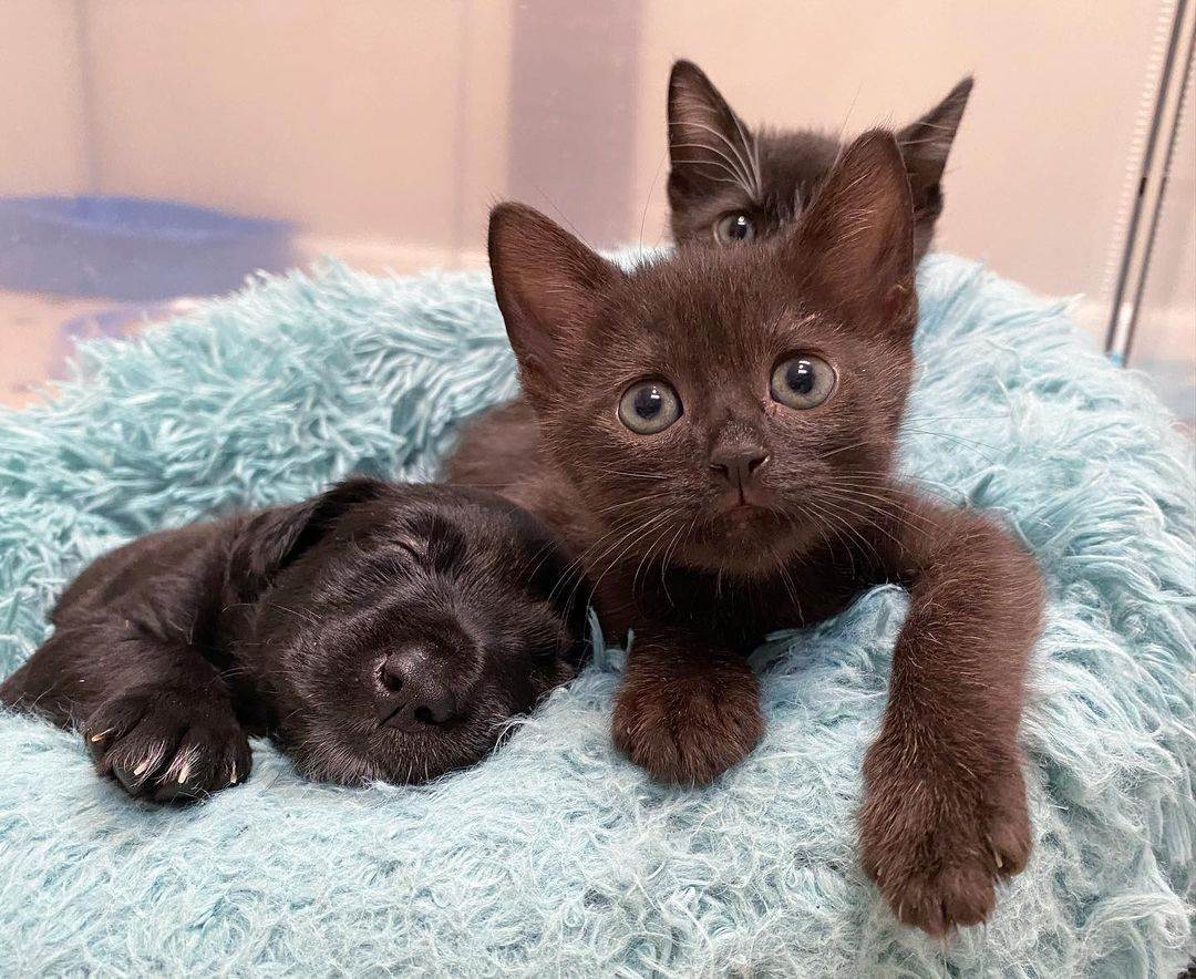 貓咪和狗狗也能和平相處,這3隻毛孩都是孤兒,都由人類撫養長大,牠們雖然不是同一物種,卻是親密的兄弟姐妹啊~