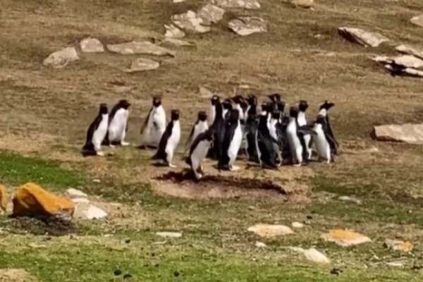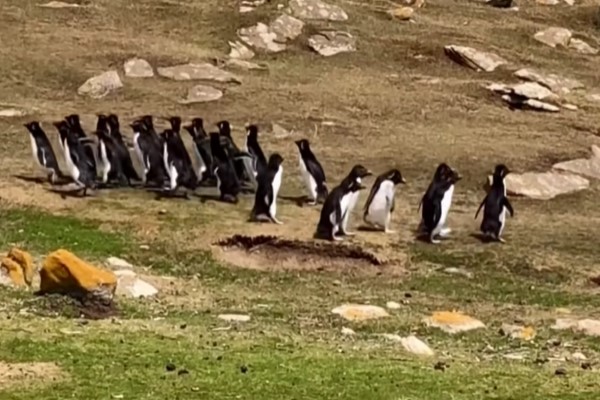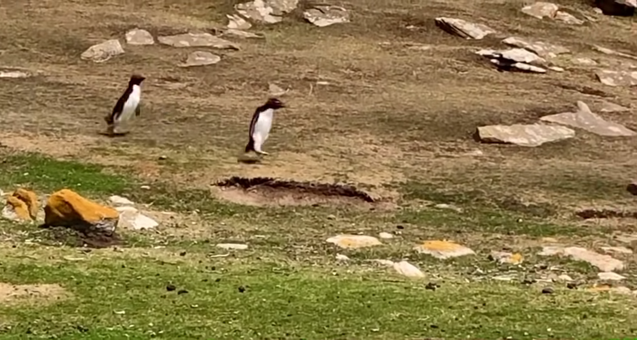 ▼YouTube頻道@The Southern Barlows經常分享動物生態影片,這些影片大多是在阿根廷南方外海的英屬福克蘭群島(Falkland Islands)拍攝的。這段兩隊跳岩企鵝打招呼的影片,就是在其中的森德爾斯島(Saunders Island)上拍到的。