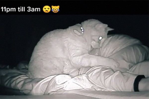 2022年05月08日貓咪的想法真的很難猜~最近國外網友Susie每天都睡不飽,哪怕早早上床入睡,早上起床還是很疲憊。她為了查找真相,在臥室中安裝監視器,這才發現每天半夜自己都會被騷擾4個小時,而罪魁禍首就是家中的愛貓Ginger!