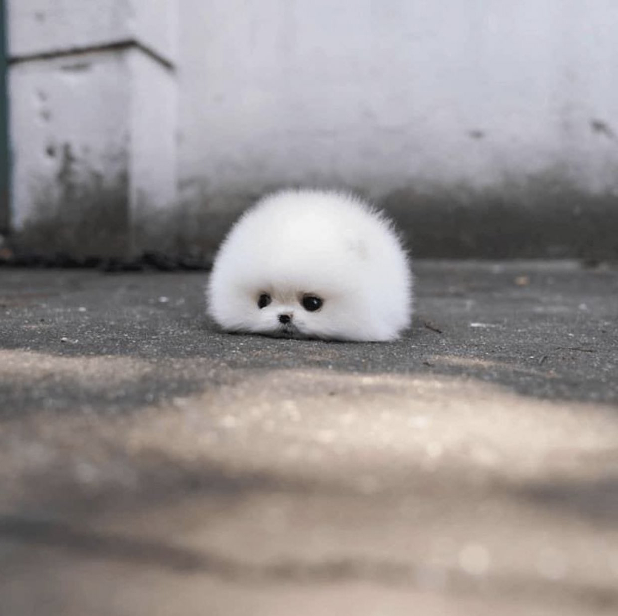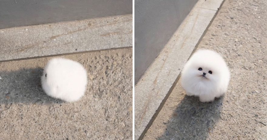▼其實這是一隻小博美。松鼠博美小時候就是這麼可愛,就像一顆棉花糖。牠毛髮蓬鬆,連耳朵都被蓋住了,遠遠看去就像毛球一樣。而且牠的體型非常小巧,能夠被人捧在手心,簡直太Q萌了。