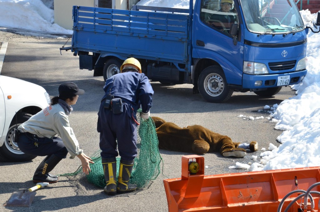▼動物園處理逃脫動物的方法都差不多,先用網、再放暈,最後送回籠子裡。