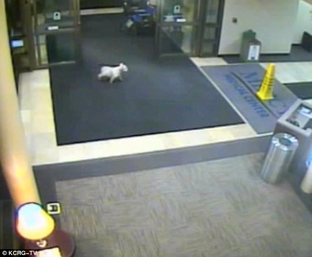 ▼從醫院的監視器畫面可以看到,Sissy穿過大門,走進醫院大廳。當時大廳裡沒有人,牠有些茫然,不知道該去哪裡找馬麻。醫院得知這件事後,特別通融讓牠去看主人,Sissy終於見到最愛的馬麻了。