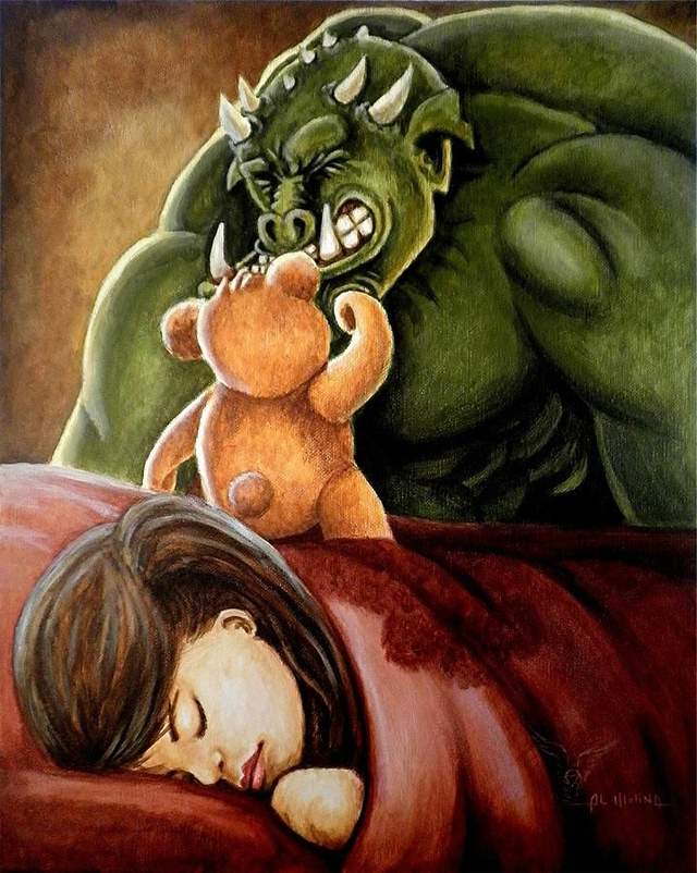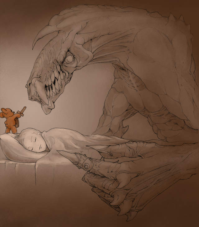 這些插畫打破了現實和童話的界線,你是不是很想回去抱抱床上的娃娃?它們平時非常安靜,在深夜卻會化身勇敢的騎士。怪不得每一天早晨醒來後娃娃都會跑到其他地方,原來它奮力跟怪獸搏鬥,這才移位了!