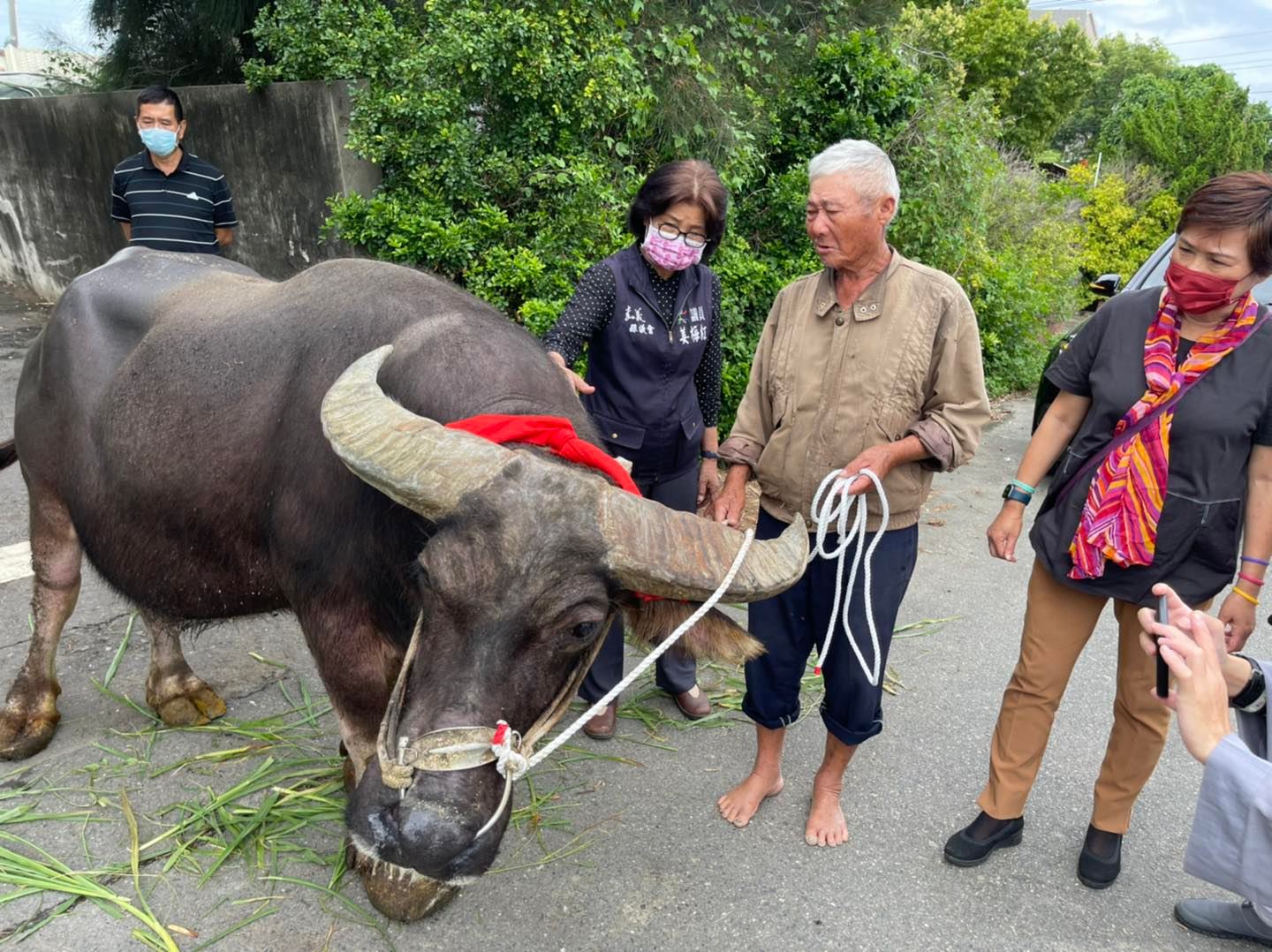 ▼張姓老農無力再從事繁重的務農作業,又捨不得陪伴自己8年的耕作水牛,不想將牠販售或送至屠宰場,於是委託兒子四處求援。老農的兒子也很感念水牛辛勤陪伴老父工作,他找到議員姜梅紅,在姜梅紅牽線下,最終將水牛送到社團法人中華護生協會屏東縣崁頂護生園區安置終老。