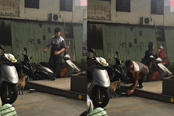 ▼當時這隻浪浪在超商門外盤桓,而不久後,店員就從店內拿出罐罐餵食,「本來狗狗還不太敢靠近,但是店員超有耐心!」目睹網友說。
