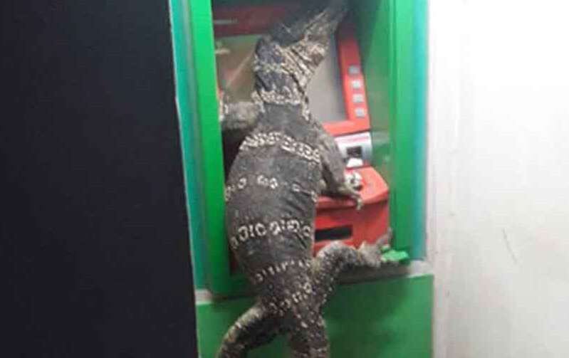 ▼網友@NovGunner在推特上發文,表示這一幕發生在馬來西亞柔佛州峇株巴轄縣,屋主回家的時候驚見門上竟有一隻巨型蜥蜴,看起來就像是一隻鱷魚。