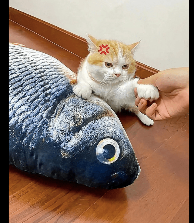 網友們看到照片後紛紛笑說:「心有魚而力不足」、「這不是給小貓咪玩的,是給老虎、獅子的吧」、「把紙箱給貓咪,牠就開心起來了」、「好想要這個玩具」、「還是給貓咪買活魚吧」、「我想買來送給我家主子」、「好傲嬌的貓咪」、「貓主子森氣啦」。