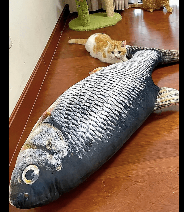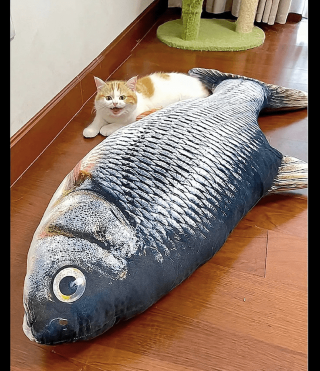 ▼這位網友在網路上看到有商家賣超逼真的玩具魚,就立刻下單,想買來給主子玩。他收到包裹時感覺不太對勁,因為這個包裹太大了,跟他想像中不太一樣。他回家拆開後瞬間無語,這麼大的魚,到底是給貓咪玩的,還是來玩貓咪的?!