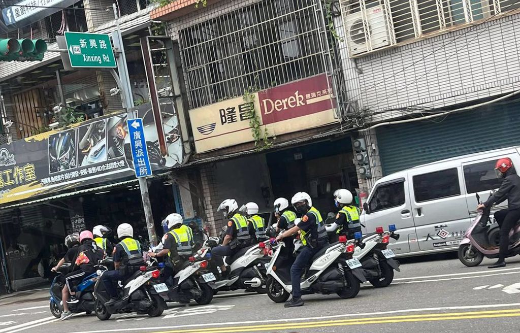 護送超重要人物?藍色機車停紅燈「遭9警包圍」 網笑翻:壓力山大