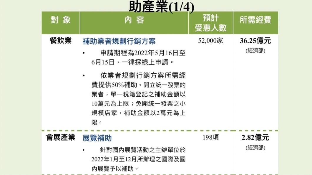 ▼經濟部16日推出餐飲行銷補助方案後,短短一週內就有萬餘家業者提出申請。對此,行政院26日決定通過再增列30億元經費,辦理餐飲行銷補助方案,累計共36.25億元。